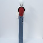 I chose to make Night Nurse to illustrate the changes brough on by a new modern century. The arrival of electricity in Maitland in 1922 would have brought vast changes to the workings of the hospital. I constructed the Night Nurse to be tall, upright, resilient and efficient, having a strong presence. She wears a full-length blue uniform buttoned up to her neck, a watch and an early 20th century cap with a light globe on her head. The globe represents both a major technological advancement and her presence, service, comfort and a new era.
