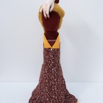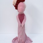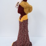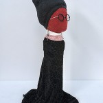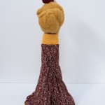 For the 20th century sculptures, the fabrics, colours and textures become more contemporary, brighter and lighter incorporating floral and geometric patterns – chiffon, crepe, linen, satin, rayon, nylon, hessian. I rummaged through boxes of offcuts, of children’s and women’ clothing – jumpers, dresses, shirts and shorts, cut fabrics and wool of all colours and textures, velvets, cottons, flannel, silk ribbons, handkerchiefs, stockings, scarves, bras, petticoats, hats, beanies, ties and gloves. I used lace for the hair of early 19th and 20th century subjects and various wools for the more contemporary 20th century ones.