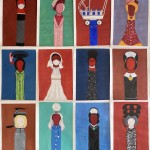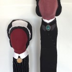 Where applicable I’ve used brooches, earrings and spectacles for distinguishable features. In the case of the Night Nurse, buttons and a watch.