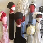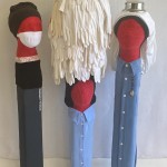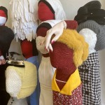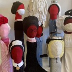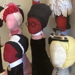 I’ve used new and recycled textiles in these sculptures for the heads and clothing, an array of materials, colours, textures to portray women in hospitals as sewing and mending clothes relates to traditional women’s work – craft, needle and thread, domesticity and femininity. Attaching the heads onto wooden bases.