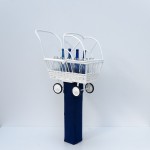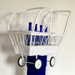 Raised on a textile mount, a white cane pram represents the maternity wards, nurses and women who have given birth at Maitland Hospital from its very beginnings to the present day. Linking the decades – the 1ate 19th century castor oil bottles and mid 20th century ½ pint milk. Bottles symbolise both motherhood and the care given in the journey from pregnancy to birth and the postnatal support mothers receive from nurses and midwives at the hospital.