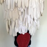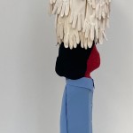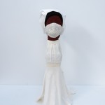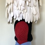 My Graduation Nurse wears a blue buttoned up uniform under a headdress of gloves. Sourcing through boxes of vintage and contemporary gloves I stitched together layers of cascading gloves to represent the nurses who graduated at Maitland Hospital over the decades. On receiving their diploma at the graduation ceremony the new nurses would present in their ironed uniforms, starched caps and white gloves – the white gloves to represent commitment, service and hygiene.