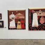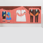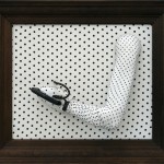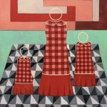 The large painting Where Are You? (2019) speaks to the cruelty of the many female factories where systems of forced adoptions were wreaked upon young vulnerable women. O’Doherty’s use of repetition and patterning in her tessellated designs and pram image serve as a sickening reminder of these practices which took place all over Australia and have had such devastating effects. Equally the sculptural works For Insolence (2019), For Pregnancy (2019), For Lice (2020) and For Drunkenness (2020) are shocking for their portrayal of institutionalised violence against women, conveyed by the artist in her minimal use of red woollen thread and found scrap metal pieces. They serve us a powerful observation about domestic violence and coercive control in contemporary Australia.
