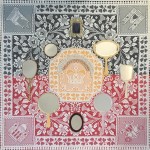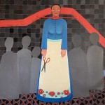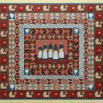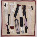 Wall hangings – Using backdrops of blankets, table clothes and bed spreads, these works are inspired by the Rajah quilt made by convict women during the trip out on board the Rajah from Woolwich to Hobart in 1841. To occupy themselves and provide skills on the journey to Australia, many of the female convicts were given scraps of material, needle and thread by English prison and social reformer Elizabeth Fry. My textile montages reflect the importance of these skills in the lives of these women but also question the value of women’s work, a deep-seated bias that women’s work is menial, trivial, undesirable and of little consequence.