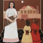 Paintings and assemblage – The paintings depict the experience of the women and society at large during the colonial era with a sense of the figure in the landscape. I have also constructed a series of assemblage using found objects to link in with the paintings referencing historical figures, events and family forebears. These works are from a female perspective representing the power and effect of the British Empire and monarchy upon the First Australians and convict settlers.