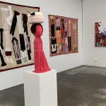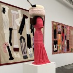 Despite the shocking imagery and subject matter, the unapologetic femininity of O’Doherty’s artworks, their warm rich palettes, the tenderness of their materiality and construction is alluring and invites close inspection. The works are charming and severe in equal measures but along with the wretchedness of their context, the counterpoint is a celebration of soft power, of women’s femininity, of resilience and of ‘women’s arts’. This is evident in the stunning piece The Ties that Bind- After the Rajah Quilt (2021) drawing inspiration from the history of The Rajah Quilt, one of Australia’s most important pieces of textiles now in the collection of the National Gallery of Australia. The Rajah Quilt was created on board the HMS Rajah during its passage from England to Van Diemen’s land, a journey that took 6 months on the ship carrying 180 convict women who were essentially sent to Australia as breeding stock for the colony’s survival. Enduring the harsh conditions on the Rajah the women banded together to make a quilt from fabric scraps and threads gifted by the benevolent social reformer Elizabeth Fry. O’Doherty’s imaginative response reflects on these extraordinary women who created a work of art about hope, whilst living in the most abject circumstances.