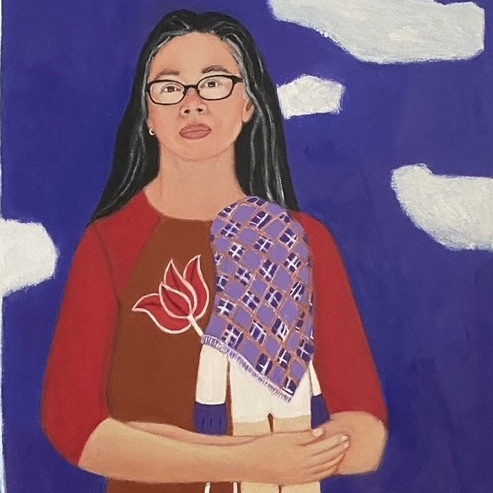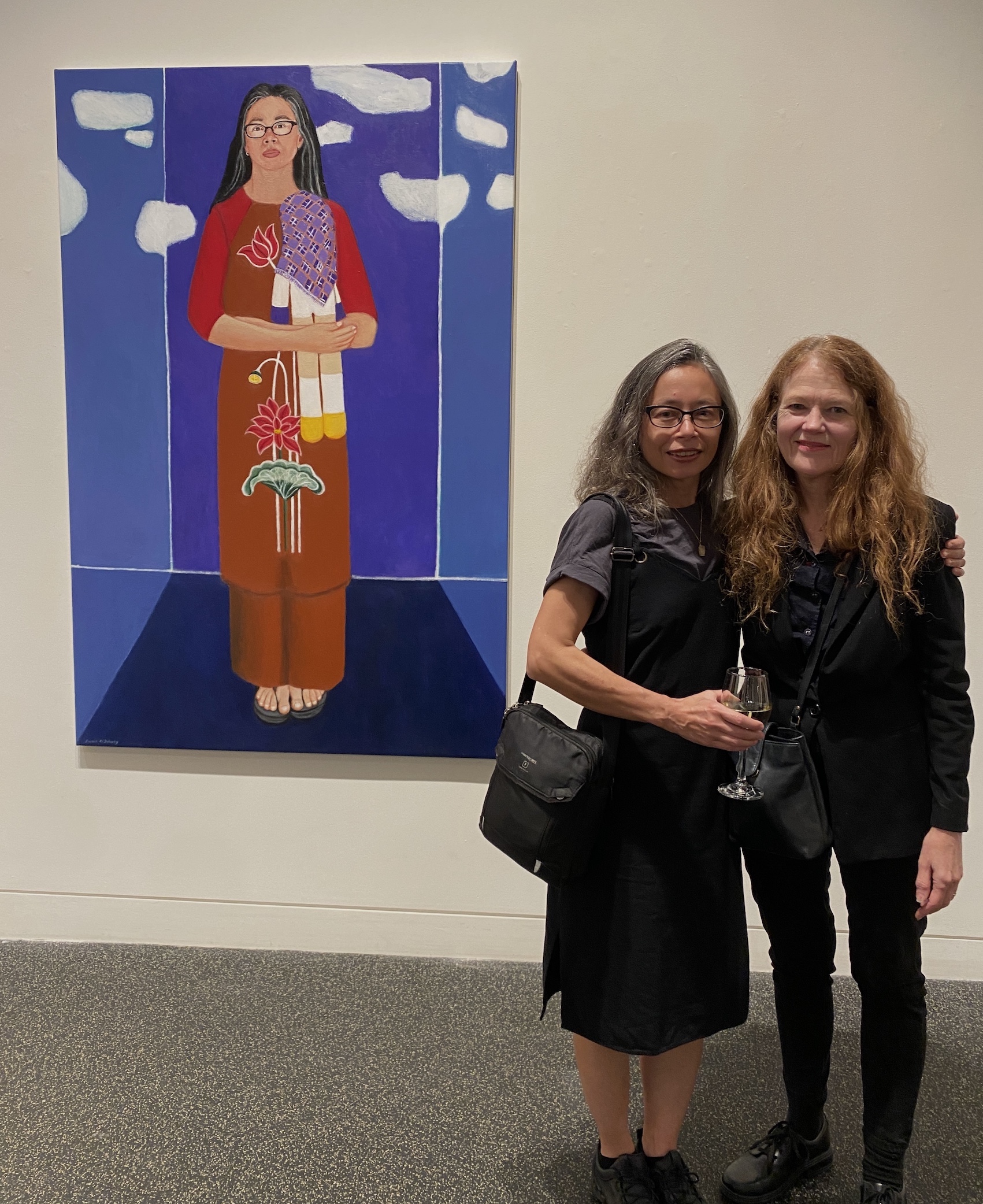 Standing with the subject of my painting Mai Nguyen-Long on opening night.